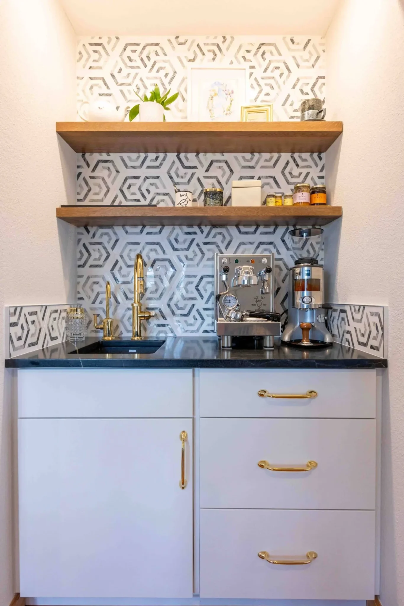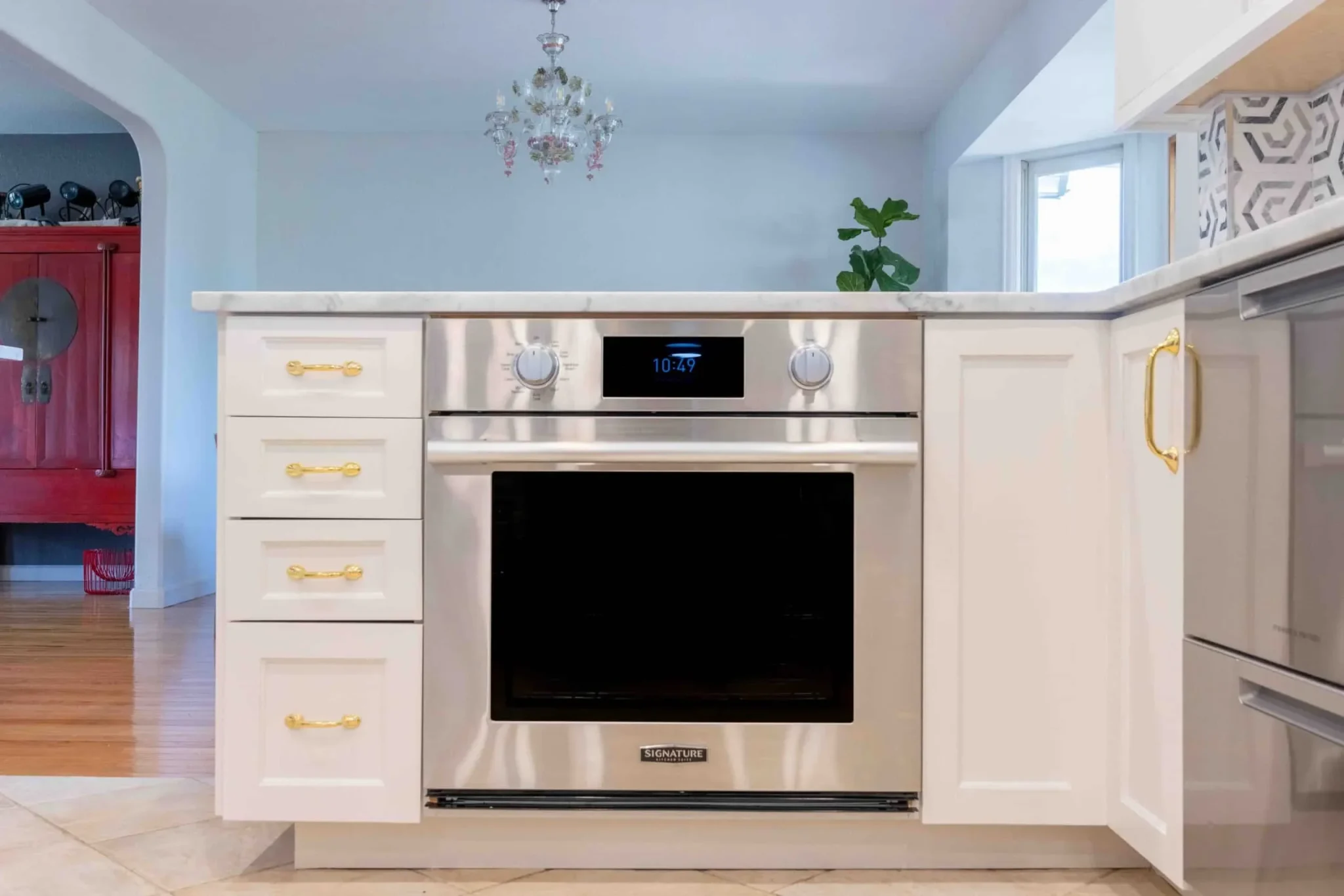 Modern lighting and updated finishes were added to brighten the space and highlight key design elements. Thoughtful details, including hardware and trim, tie the entire kitchen together.