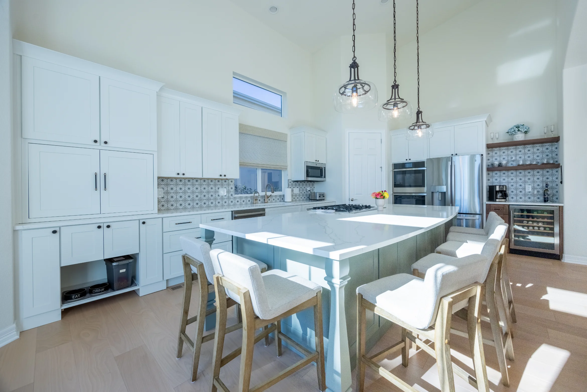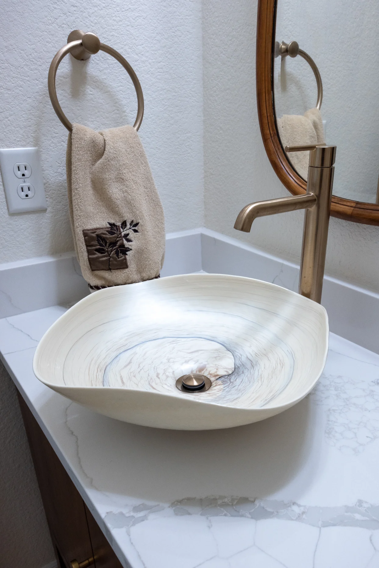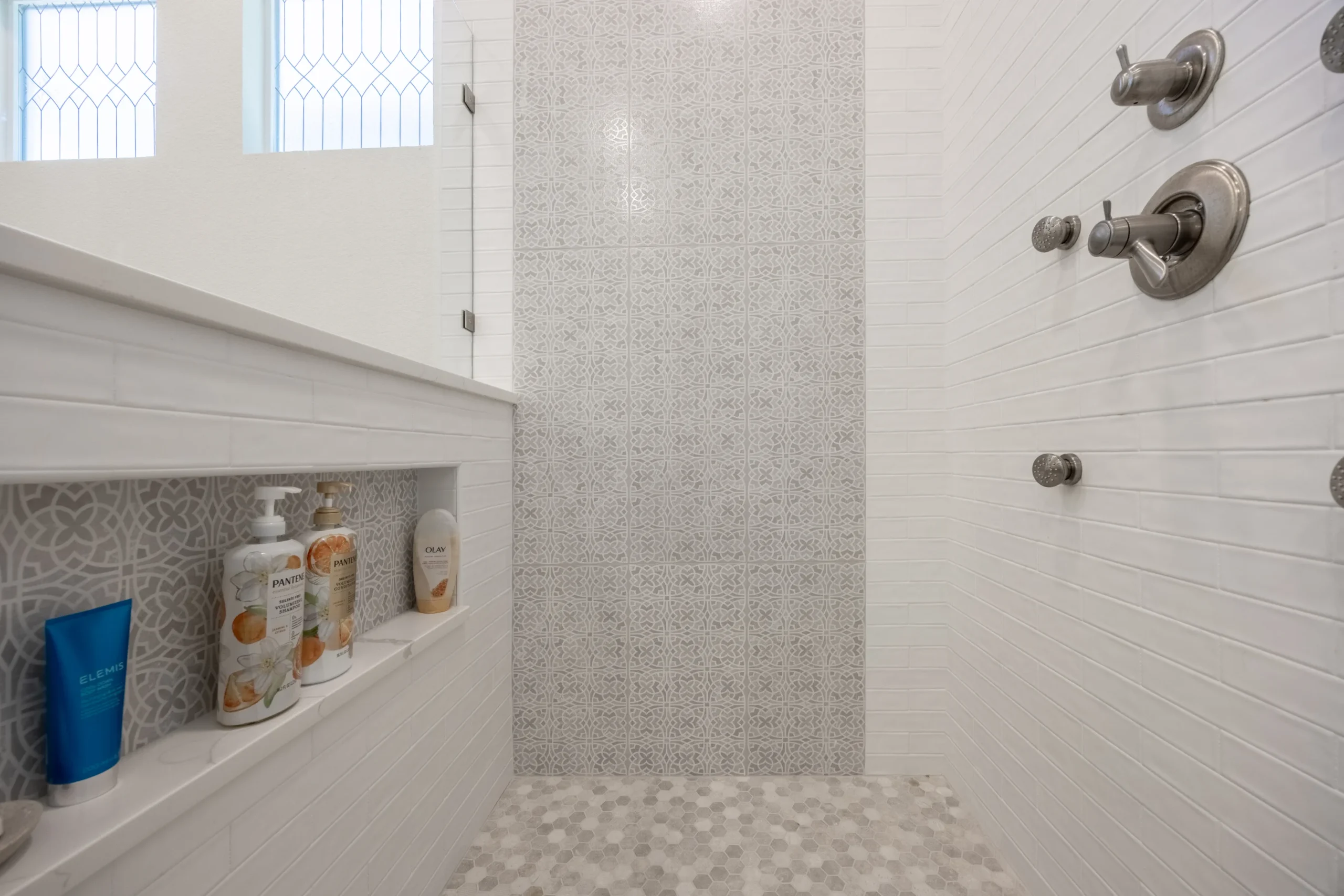 From expanding the kitchen island to doubling the size of their primary shower, every detail of this remodel was thoughtfully designed. Lisa played an active role in curating pieces that made her smile, from light fixtures to the powder bath vanity.