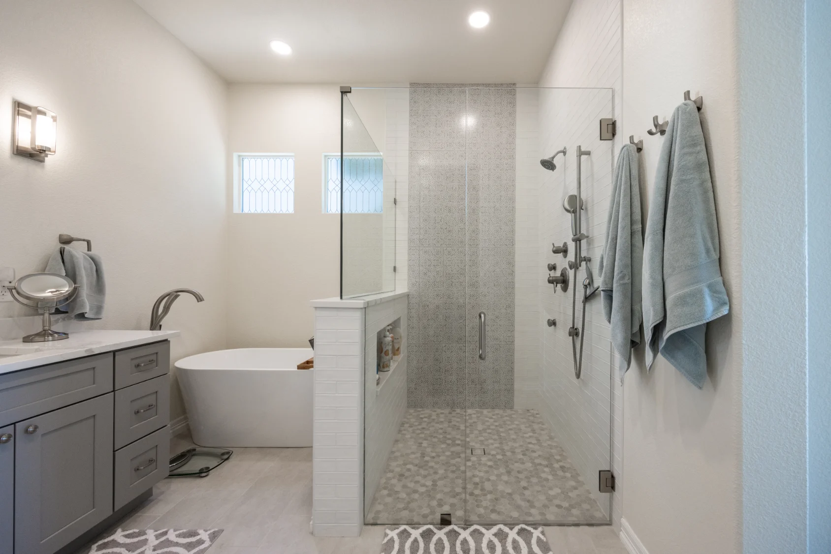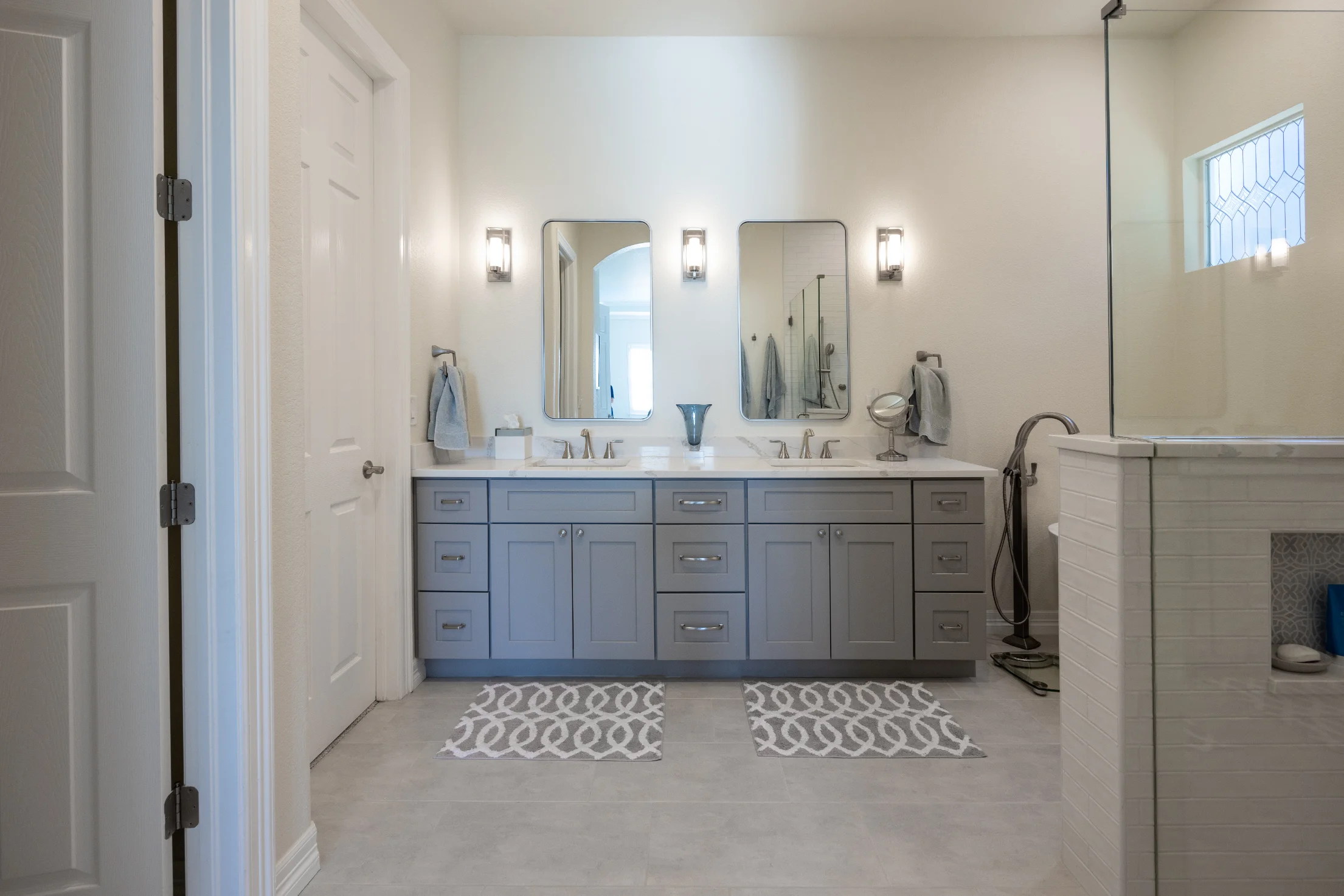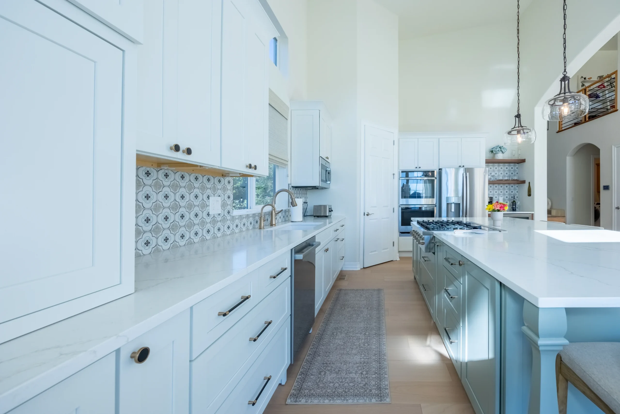 From expanding the kitchen island to doubling the size of their primary shower, every detail of this remodel was thoughtfully designed. Lisa played an active role in curating pieces that made her smile, from light fixtures to the powder bath vanity.